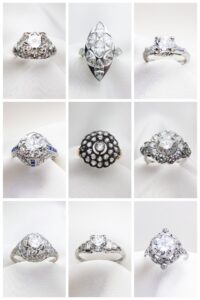 These rings pair beautifully with antique venues, lace gowns, and timeless décor. Vintage themes connect naturally with filigree details, milgrain edges, and geometric Art Deco designs. Browse vintage‑inspired engagement rings that complement this timeless style.